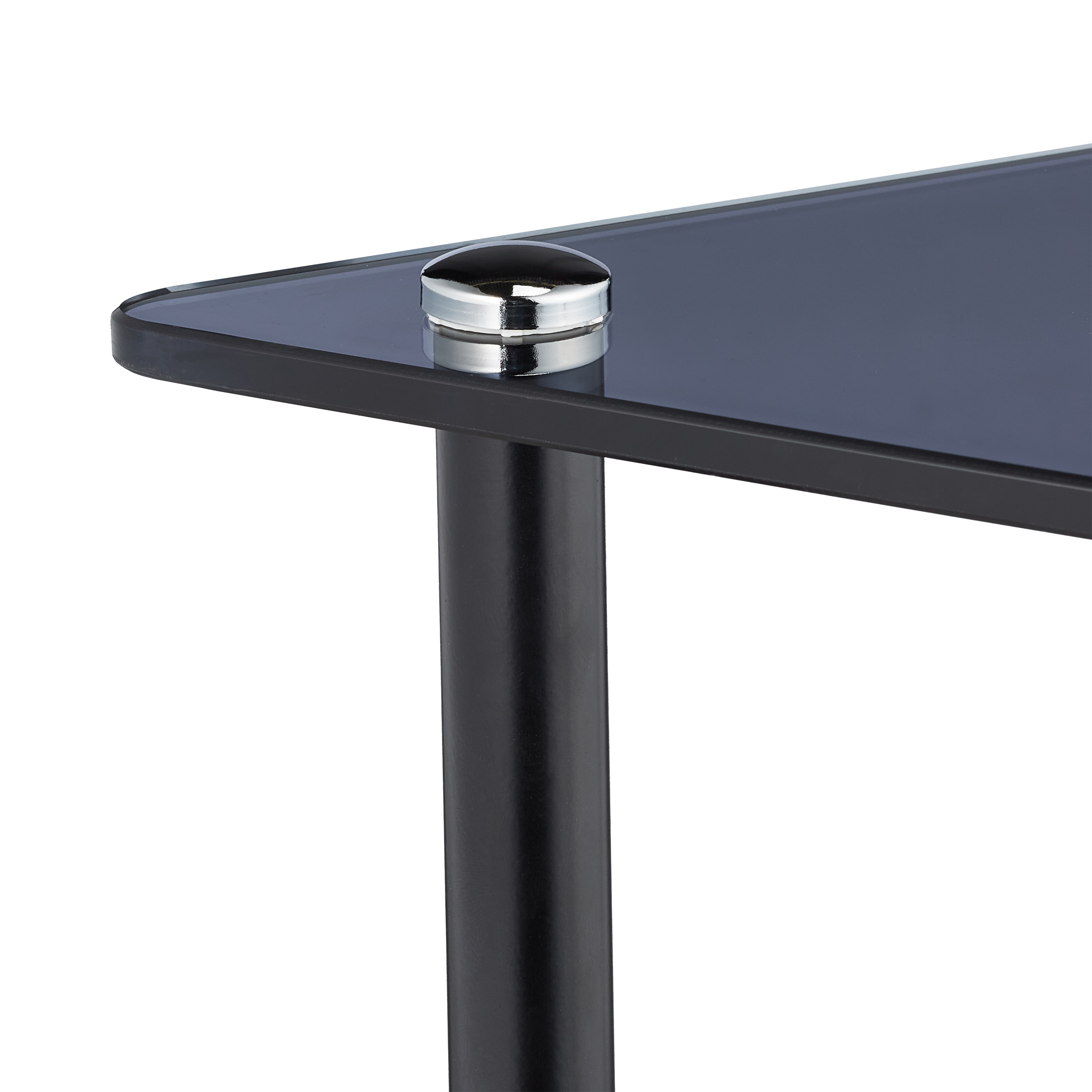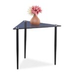 Modernus dizainas: Trikampis stiklinis stalviršis suteikia stalui šiuolaikišką išvaizdą, kuri puikiai dera su pilkos ir juodos spalvų deriniu.