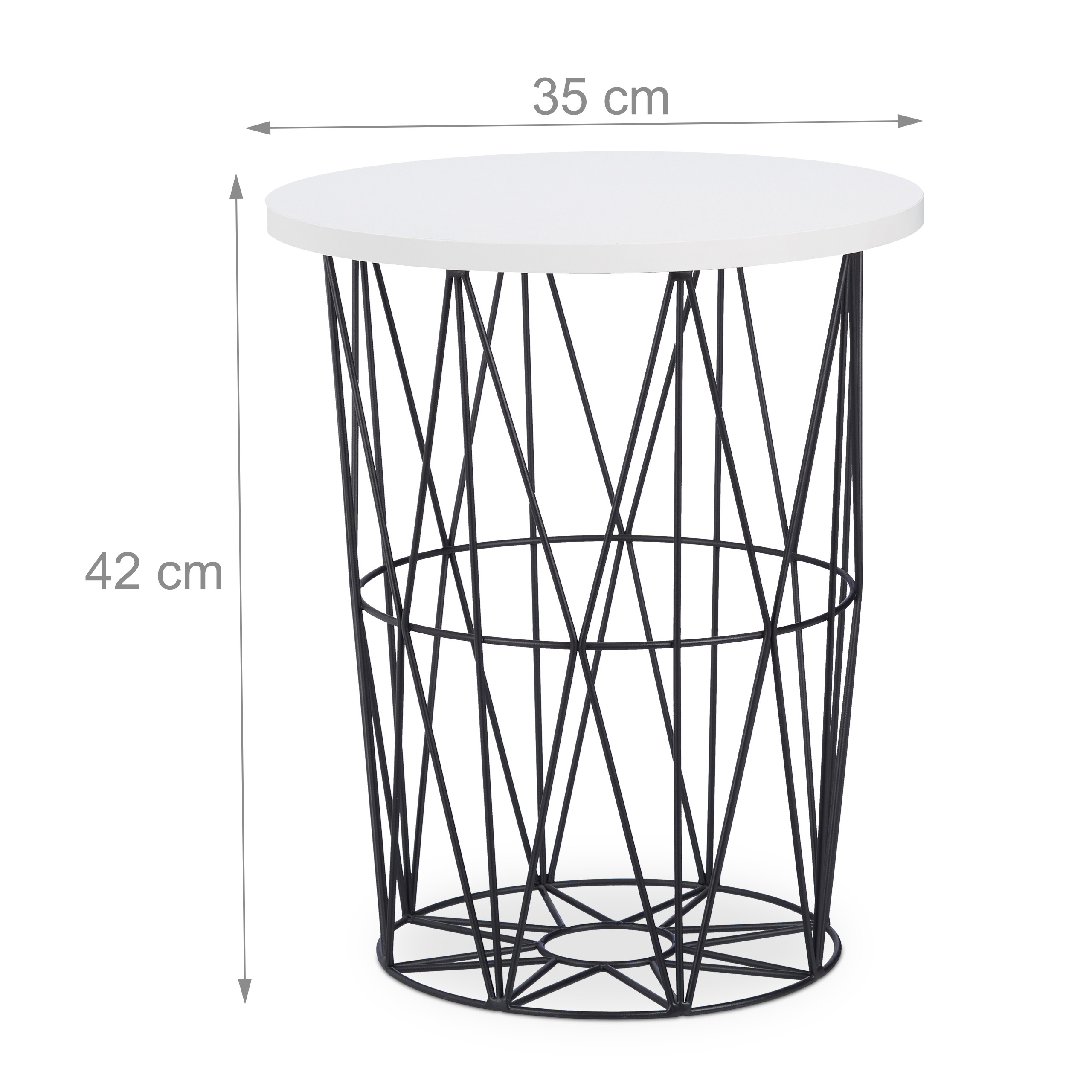 Staliukas pasižymi balta lentyna su metaliniu krepšeliu, kuris suteikia papildomą funkcionalumą ir stiliaus akcentą. Jo paprastos spalvos ir nesenstanti forma leidžia lengvai derinti su įvairiais interjero stiliais.