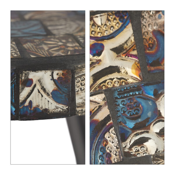 Pristatome Jums išskirtinį mozaikinį šoninį staliuką, kuris neabejotinai taps Jūsų interjero akcentu. Šis staliukas, su savo dekoratyviniu mozaikos stalviršiu, yra ne tik funkcionalus, bet ir estetiškai patrauklus. Jo universalumas leidžia jį naudoti įvairiose erdvėse: