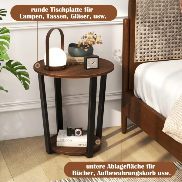 - Apvalus šoninis staliukas su dviem pakopomis ir atvira lentyna leidžia tvarkingai laikyti ir eksponuoti smulkius daiktus.