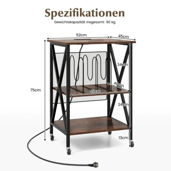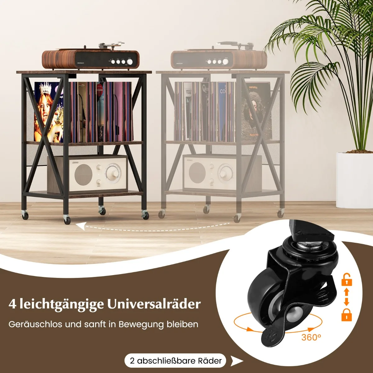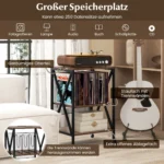 Šoninis staliukas 52x45x75cm, juodos ir rudos spalvos, skirtas vinilinių plokštelių ir kitų garso laikmenų saugojimui. Patogus baldų sprendimas su integruota įkrovimo stotele ir mobilumu, kuris puikiai tiks tiek kaip įrašų lentyna, tiek kaip naktinis arba kavos staliukas.