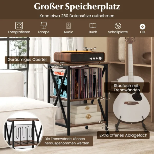 - Talpus vinilo stovas, talpinantis apie 250 įrašų su papildomu atviru ir pertvaromis sukomponuotu skyriumi.