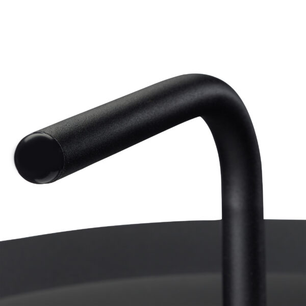Stilingas dizainas: Klasikinė juoda spalva ir lenkta kojelė suteikia stalui elegancijos ir išskirtinumo.