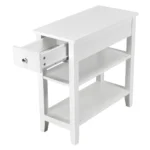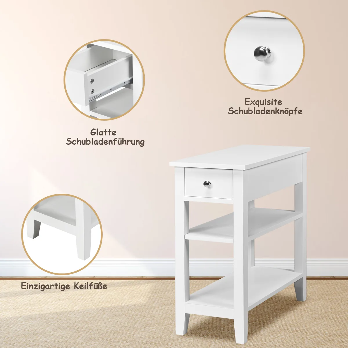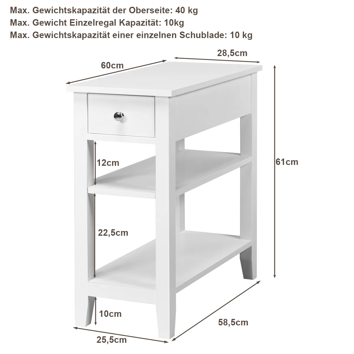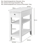 Šoninis staliukas 60×28,5×61 cm baltos spalvos yra praktiškas sprendimas mažoms erdvėms. Jis puikiai tinka naudoti prie lovos, sofų ar kitų kambario zonų, užtikrinant papildomą saugojimo vietą. Minimalistinis dizainas dera prie įvairių interjero stilių.