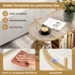 Šoninis staliukas 60x40x76 cm, auksinės spalvos, puikiai tinka tiek svetainėje, tiek miegamajame ar biure. Grūdinto stiklo stalviršis ir metalinis rėmas užtikrina ilgaamžiškumą, o dvi pakopos suteikia papildomos vietos jūsų daiktams.
