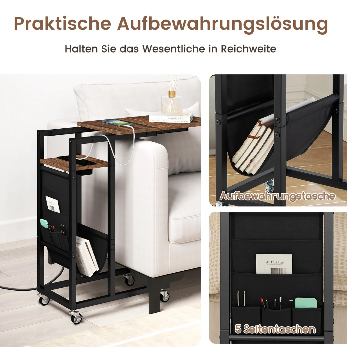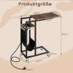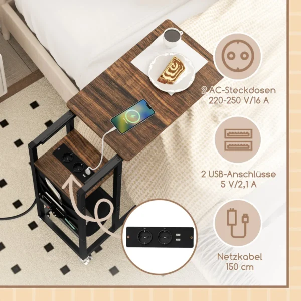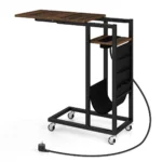 Šoninis staliukas 69x30x69 cm, juodos ir rudos spalvos, puikiai pritaikytas gyvenamosioms erdvėms, kur svarbus funkcionalumas ir vietos taupymas. Tinkamas naudoti prie sofos ar lovos, šis C formos staliukas turi ištraukiamą stalviršį ir integruotus įkrovimo lizdus, užtikrinančius patogumą kasdienėje aplinkoje.