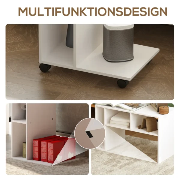 Atraskite HOMCOM serviravimo vežimėlio universalumą – C formos stebuklą, kuris lengvai telpa šalia jūsų sofos ar lovos. Turėdamas tris praktiškus skyrius ir papildomą lentyną, jis puikiai sutvarkys būtiniausius daiktus ir visada po ranka. Dėl keturių ratų, iš kurių du yra su stabdžiais, vežimėlį galima lengvai perkelti arba saugiai pritvirtinti. Idealiai tinka kaip naktinis staliukas, šoninis staliukas ar jaukus jūsų skaitymo kampelio palydovas.
