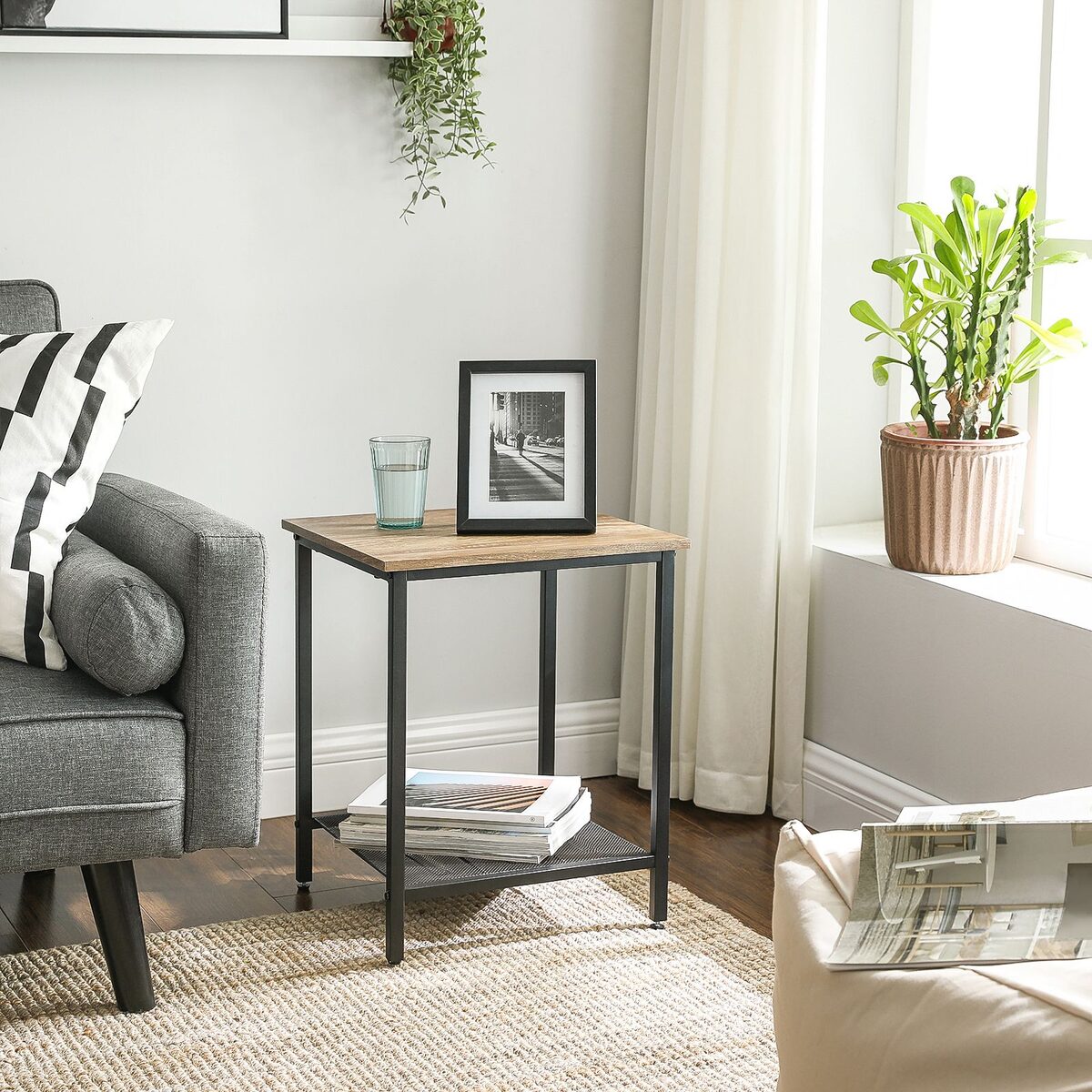 Šis šoninis staliukas LET176B01, juodos spalvos, yra puikus pasirinkimas jūsų namų interjerui. Jo medaus ruda-juoda spalva suteikia elegancijos ir šilumos bet kuriam kambariui.