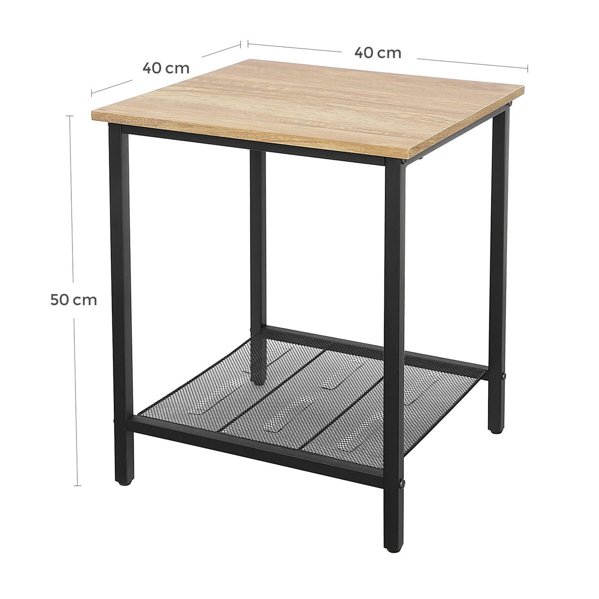 Pagamintas iš aukštos kokybės medžio drožlių plokštė (MDP) ir plieno, šis staliukas yra tvirtas ir ilgaamžis. Jo dydis yra 40 x 40 x 50 cm , o svoris – tik 2,6 kg, todėl jį lengva perkelti ir pritaikyti įvairiose erdvėse.