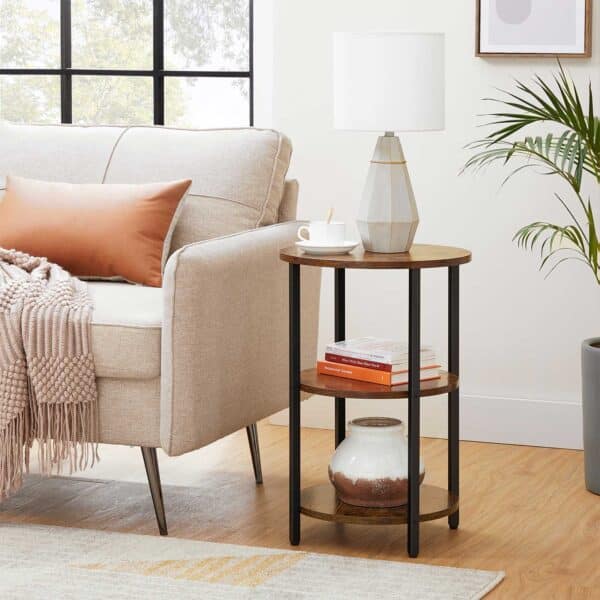 Šoninis staliukas LET280B01 yra puikus pasirinkimas tiems, kurie vertina stilių ir funkcionalumą. Jo rudos ir juodos spalvos derinys suteikia elegancijos bet kuriam interjerui.