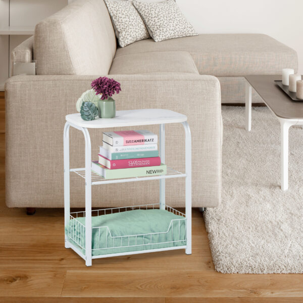 Šoninis staliukas su lentyna 62x50x30cm, baltos spalvos