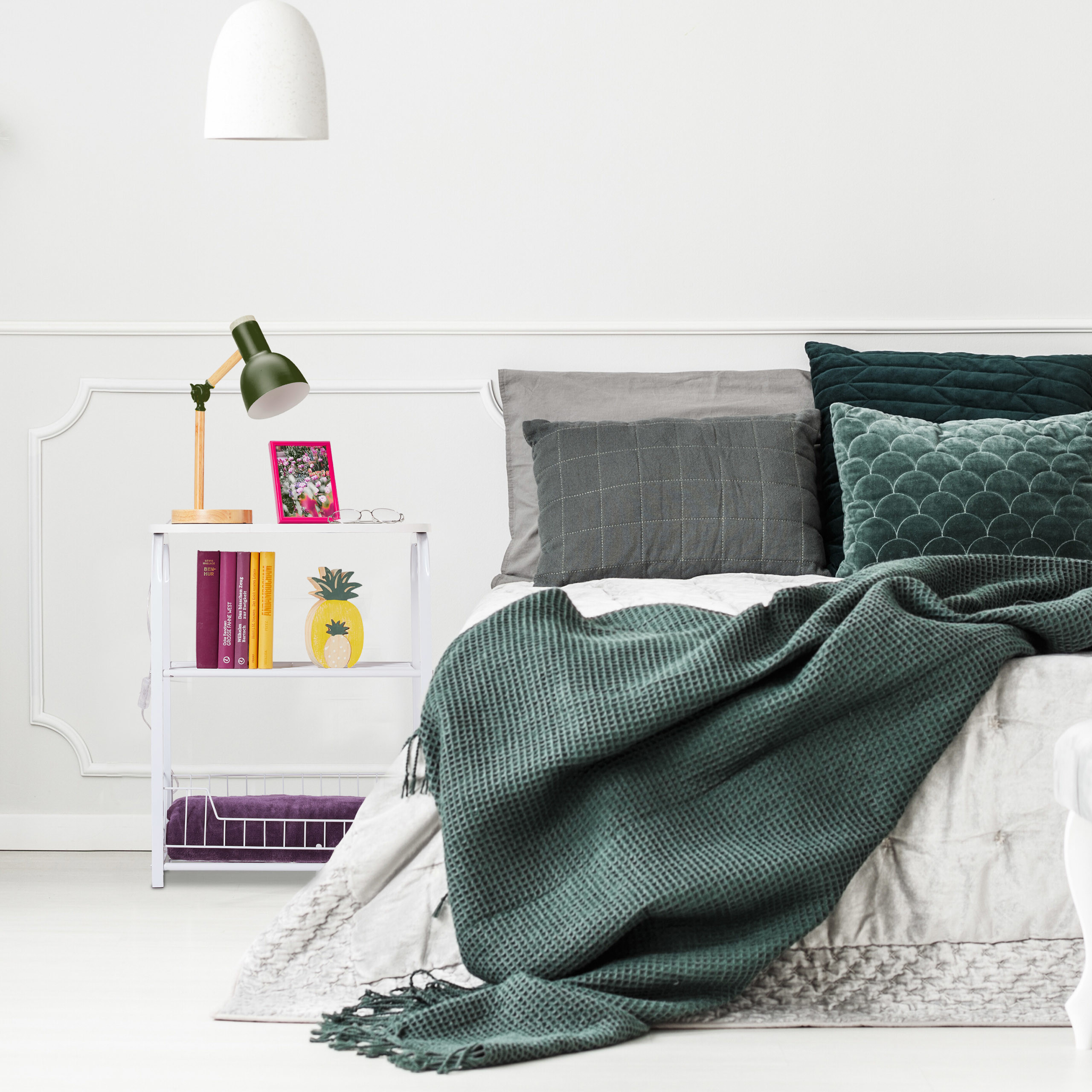 Papildoma vieta: Dvi lentynos suteikia papildomos vietos antklodėms, žurnalams ar kitiems daiktams laikyti.