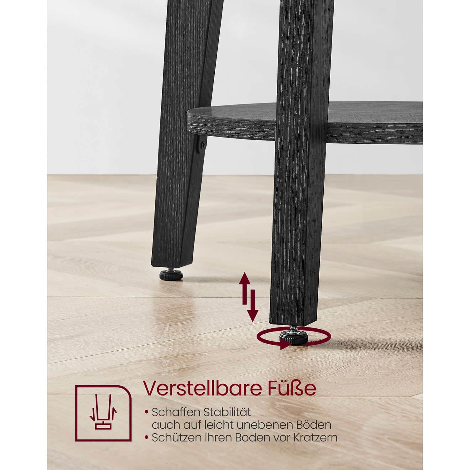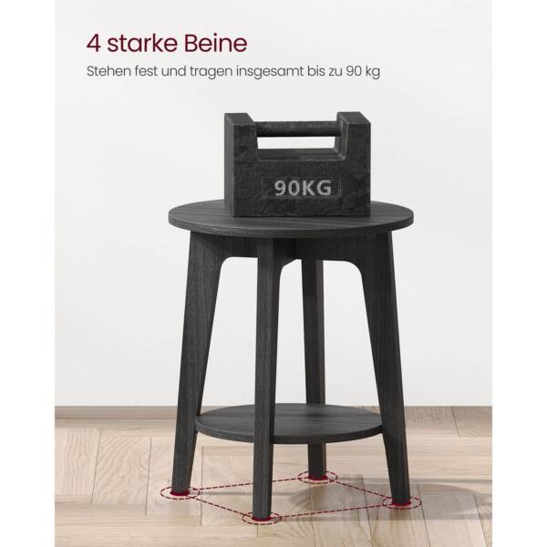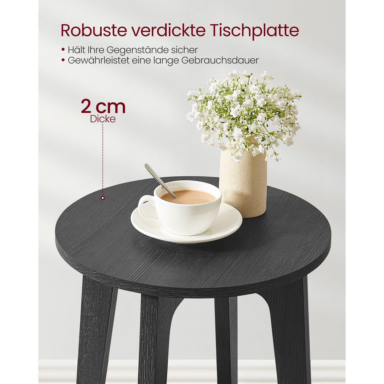 Pagamintas iš aukštos kokybės medienos drožlių plokštės, šis staliukas yra tvirtas ir ilgaamžis. Jo kompaktiškas dydis – 40 x 50 cm (Ø x A) – leidžia lengvai pritaikyti jį įvairiose erdvėse, nesvarbu, ar tai būtų svetainė, miegamasis ar biuras.