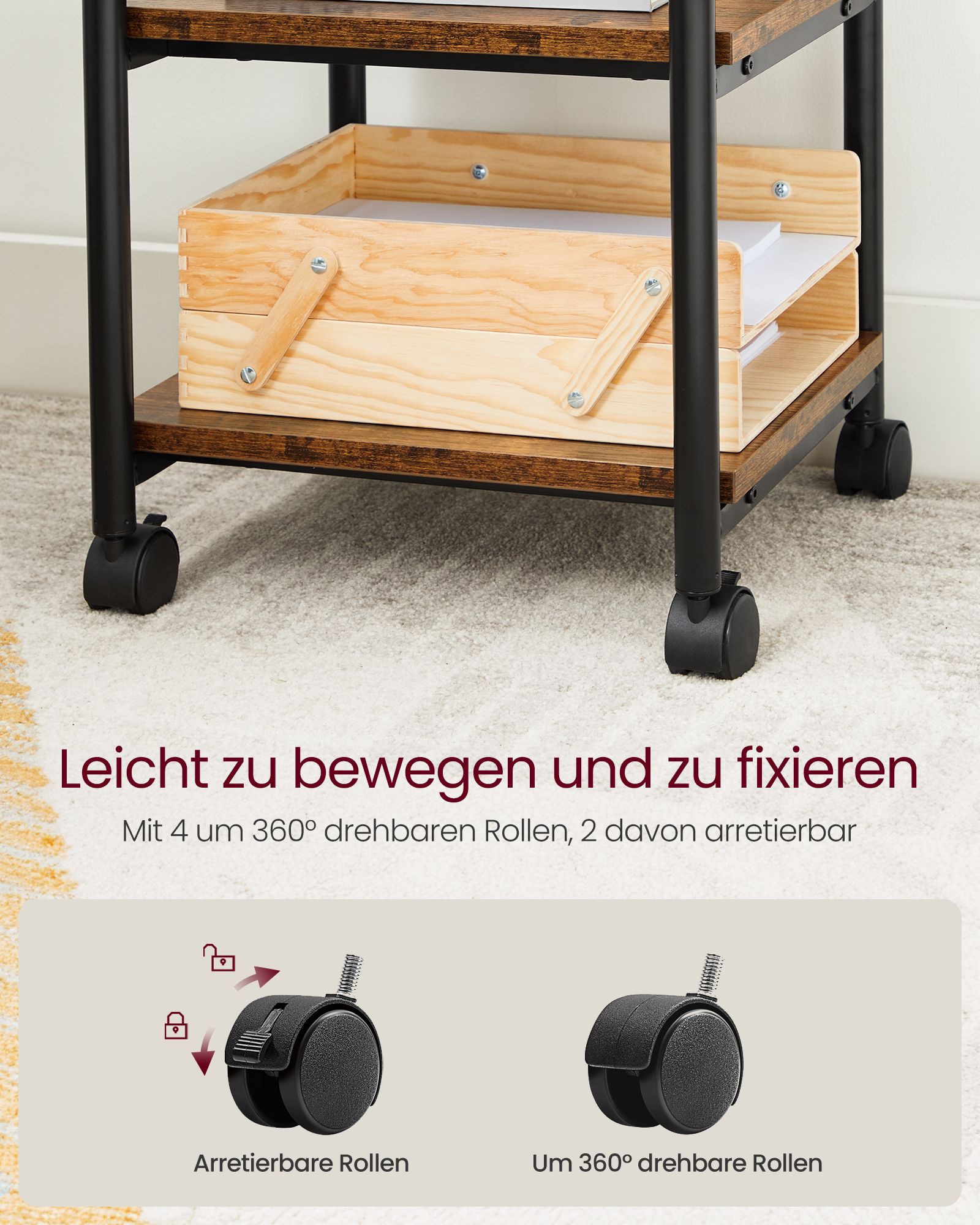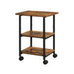 Ieškote praktiško ir stilingo sprendimo savo namų interjerui? Šis šoninis staliukas su lentynomis ant ratukų yra puikus pasirinkimas! Jo vintažinė ruda-juoda spalva ir tvirtas dizainas suteiks jūsų erdvei elegancijos ir funkcionalumo.