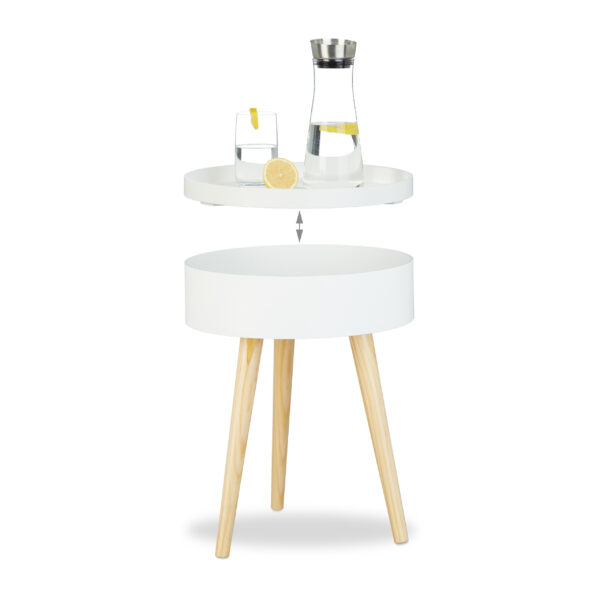 Šoninis staliukas su padėklu 50x38x38cm, šviesiai rudos/baltos spalvos