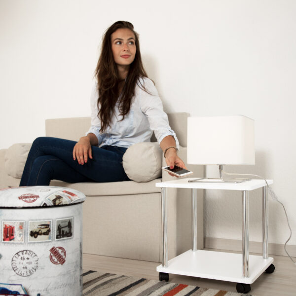 Šis šoninis staliukas yra ne tik stilingas, bet ir labai funkcionalus. Jis gali būti naudojamas kaip: