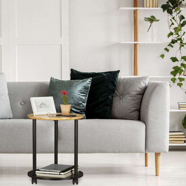 Šoninis staliukas su ratukais 49x40cm, juodos/šviesiai rudos spalvos
