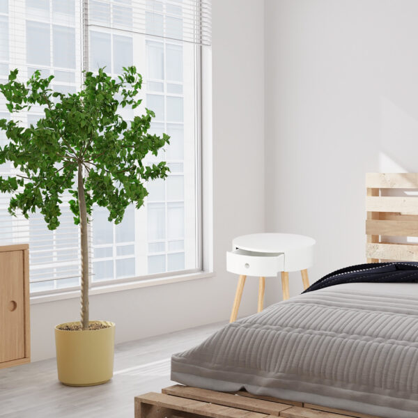 Šoninis staliukas su stalčiumi 52x40cm, šviesiai rudos/baltos spalvos