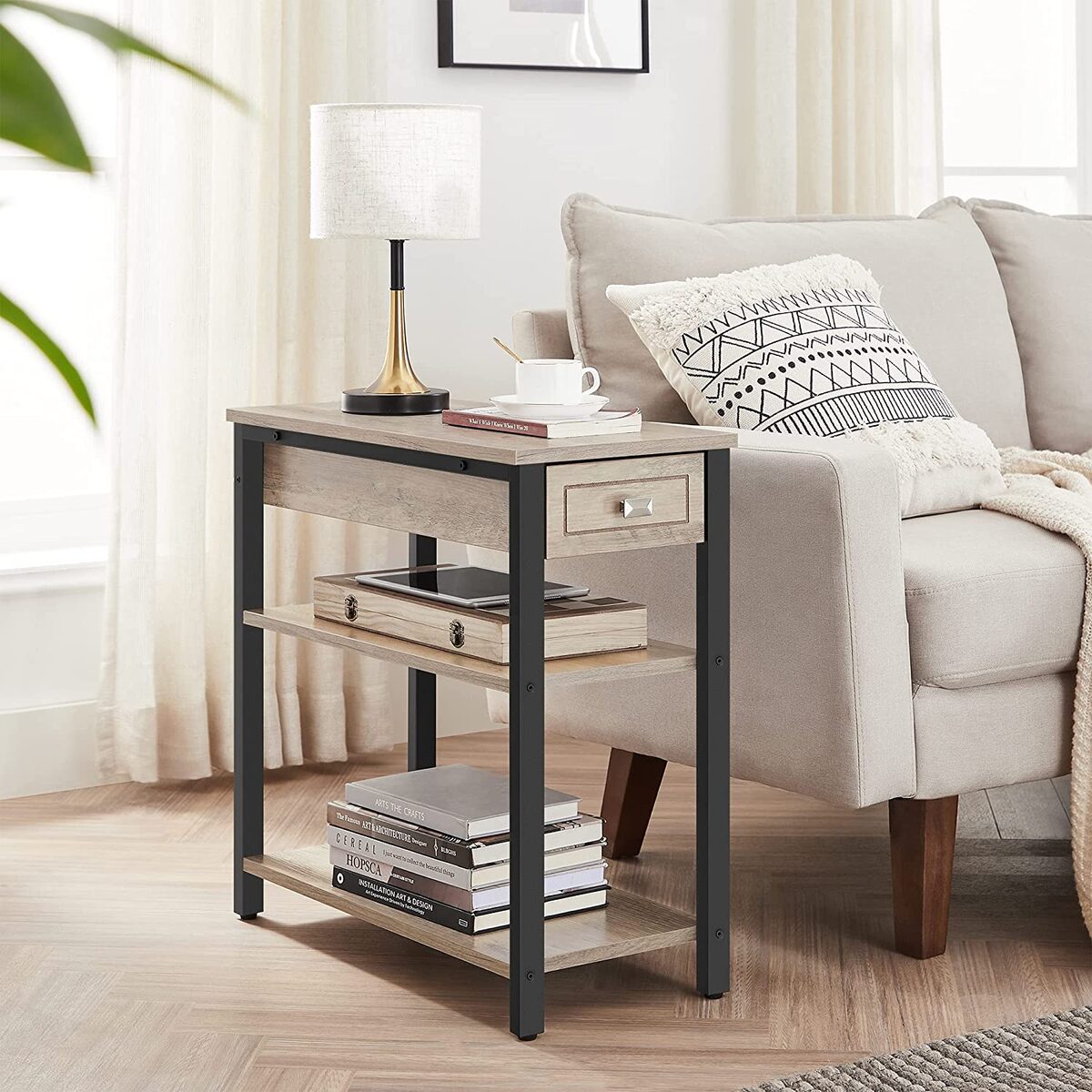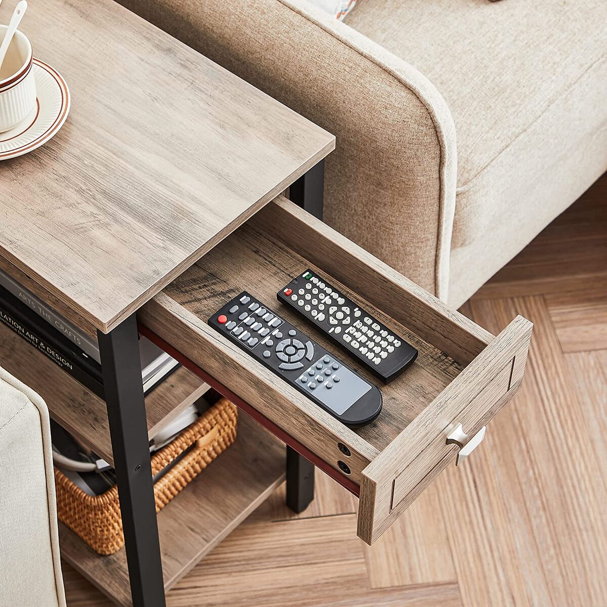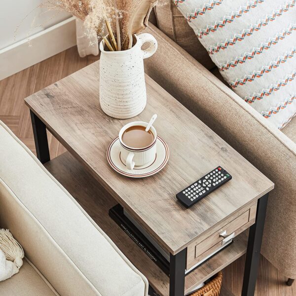 Šoninis staliukas su stalčiumi LET313B02, pilkas/juodas