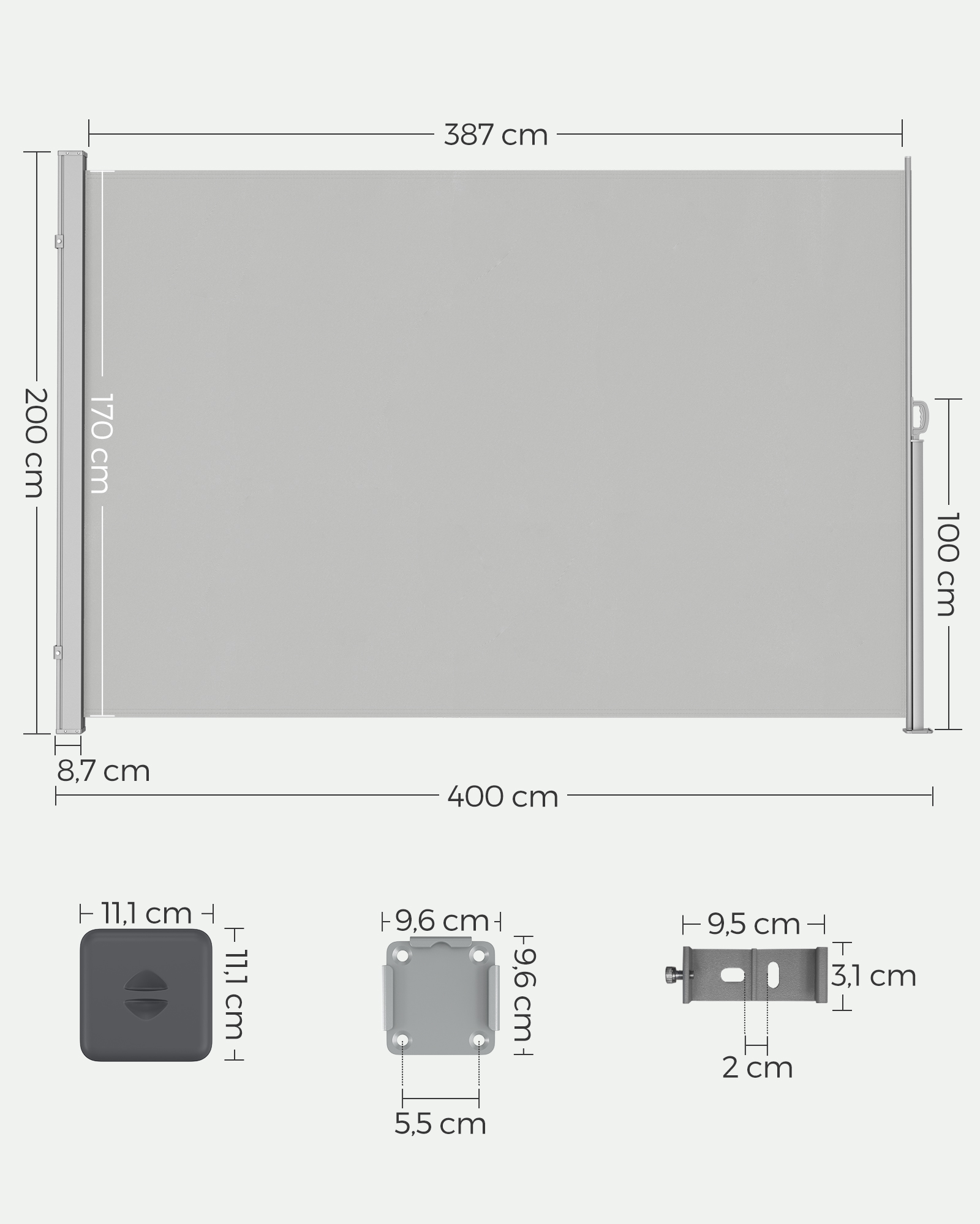 Šoninis tentas 200x400cm., pilkos spalvos
