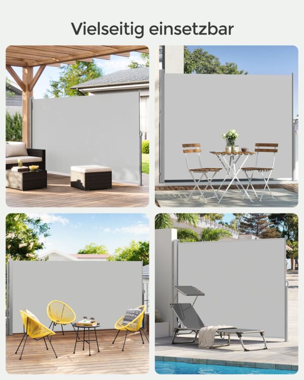 Šis elegantiškas ir funkcionalus šoninis tentas yra puikus pasirinkimas tiems, kurie nori sukurti jaukią ir apsaugotą erdvę savo sode, terasoje ar balkone. Su šiuo tentu galėsite mėgautis lauko erdve net ir esant nepalankioms oro sąlygoms.