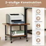 Spausdintuvo stalas 49x40x38cm rudos ir juodos spalvos yra praktiškas sprendimas darbo vietos organizavimui. Dviejų pakopų dizainas suteikia papildomos vietos spausdintuvui ir kitiems daiktams laikyti. Tvirtas metalinis rėmas ir atsparus stalviršis užtikrina patikimumą bei ilgaamžiškumą.