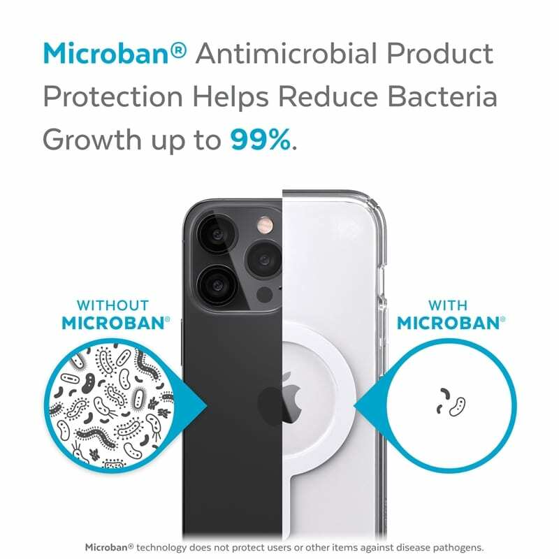 Speck Presidio Perfect-Clear + MagSafe – iPhone 13 dėklas su MICROBAN danga (skaidri)