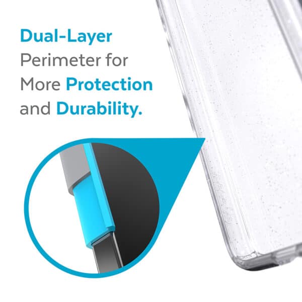 Plonas, apsauginis skaidrus dėklas su blukimui atspariais blizgančiais kristalais. Naujos medžiagos ilgiau išlaiko jūsų dėklą nepriekaištingai švarų ir užtikrina didesnį patvarumą. Su aiškia smūgio technologija ir Microban®. PRESIDIO® PERFECT-CLEAR su GLITTER yra aiškiausias mūsų kada nors sukurtas apsauginis dėklas. Mūsų naujoviškos medžiagos leido sukurti dėklą, kuris ilgiau išlieka skaidrus ir suteikia daugiau apsaugos bei patvarumo. Jame yra blizgantys blizgantys kristalai, įterpti į dėklą. Jie tikrai atsparūs blukimui, braižymui ir nenusidėvės. Šis dėklas ne tik stilingas, bet ir mūsų aiškios smūginės technologijos dėka jis tvirtas kaip nagai. Mūsų patentuota, skaidri telefoną amortizuojanti guma suspaudžia smūgius, kad apsaugotų jūsų telefoną ir nesugadintų. Šie dėklai buvo išbandyti realiame pasaulyje, kad atlaikytų kritimą iki 13 pėdų aukščio, todėl būsite tikri, kad jūsų telefonas bus apsaugotas. Jame taip pat yra įmontuotas Microban® antimikrobinis apdorojimas, kuris 99 % sumažina dėmių ir kvapą sukeliančių bakterijų skaičių ant korpuso ir sukuria švaresnį paviršių. Jei to nepakako, jame taip pat yra pakeltas dangtelis. Šis papildomas kraštas padeda apsaugoti ekraną nuo subraižymo ir sudužimo, jei ir (arba) kai telefonas nukrenta ir nukrenta veidu žemyn. Savybės: · Iki 13 pėdų apsauga nuo kritimo, užtikrinantis išskirtinį patvarumą · Įterpti blizgantys kristalai apsaugo nuo blukimo ir braižymo · Novatoriška skaidrių smūgių technologija sušvelnina telefoną ir apsaugo nuo pažeidimų · Perfect-Clear danga apsaugo nuo spalvos pasikeitimo, o medžiagos nuo pageltimo dėklas atrodo idealiai skaidrus · Microban® sumažina bakterijų dauginimąsi 99 %, kad apsaugotų dėklą, sukurdamas švaresnį paviršių · Paaukštintas rėmelio ekrano apsauga · Plonas dizainas leidžia lengvai įkrauti belaidį