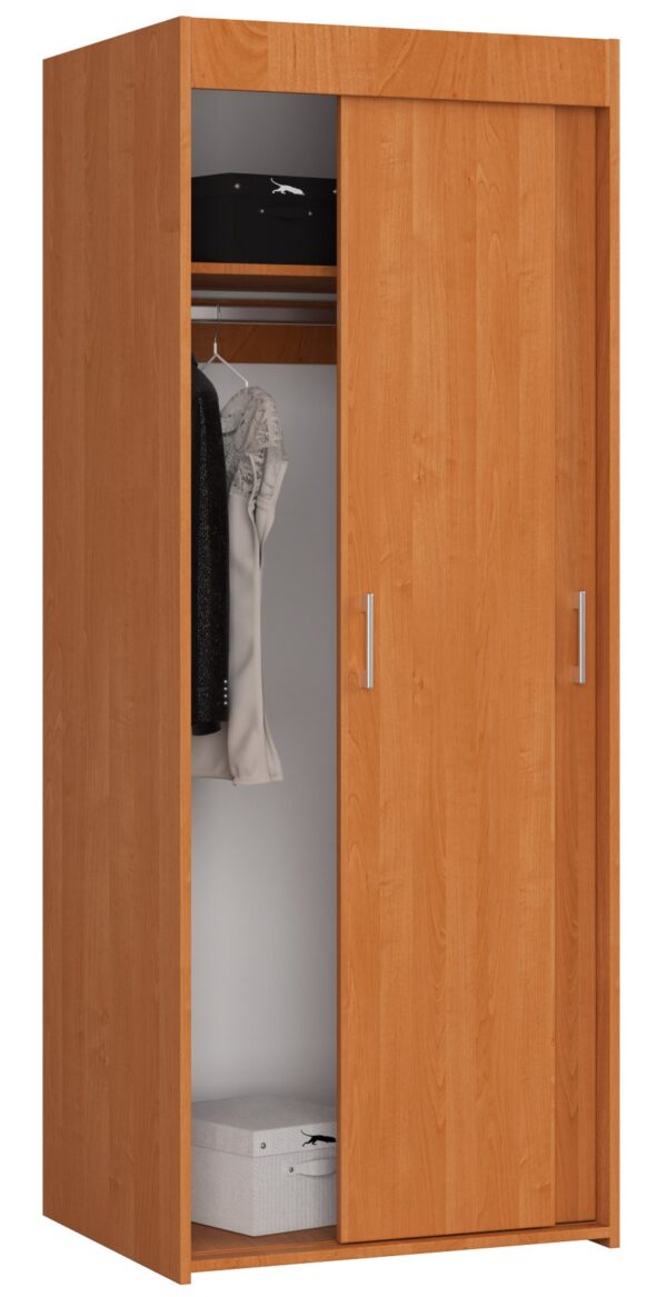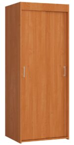 – Spinta iš kronospan trinčiai atsparios laminuotos plokštės – Spintos funkcionalumą užtikrina slankiojančios durelės – Spintos viduje yra viena lentyna ir bėgelis – Spintos gylis 60cm, dėl to ji stabili ir talpi – Kraštai uždengti su ABS briauna, užtikrinančia aukštą apsaugą nuo pažeidimų – Spinta, skirta montuoti savarankiškai – Pristatymo vadovas – 24 mėnesių gamintojo garantija Dviejų durų stumdoma alksnio spalvos spinta yra funkcionalus baldas, kurį galima naudoti labai universaliai . Spintoje daug vietos drabužių kabykloms, viršuje – erdvi lentyna. Jei baldas turi būti prieškambaryje, viršutinėje lentynoje galite laikyti, pavyzdžiui, šalikus, pirštines ir kepures. Drabužių spinta tiks ir miegamajame, jaunimo kambaryje ar net mažo buto svetainėje. Baldai yra vizualiai patrauklūs ir tinka tiek moderniame, tiek klasikiniame interjere. Dėl švelnaus faneros atspalvio drabužių spinta puikiai dera su tamsesnių ir šviesių spalvų interjero dizainu. Stumdoma spinta alksnio pavėsyje pagaminta iš laminuotos plokštės, kuri yra labai atspari trinčiai ir ilgalaikiam naudojimui. Baldo kraštai kruopščiai apdailinti patvaria ABS fanera. Spintos durys labai sklandžiai slysta ant aukštos kokybės bėgelių ir turi ergonomiškas metalines rankenas.