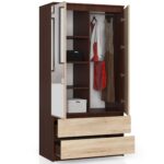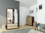 Pristatomos spintos yra funkcionalumo ir modernaus dizaino derinys. Pagamintos iš aukštos kokybės laminuotų plokščių, pasižymi padidintu atsparumu dilimui ir kitiems mechaniniams pažeidimams. Spintelių kraštai – kaip labiausiai pažeidžiamas elementas – buvo papildomai sutvirtinti naudojant ABS apvadus. Dėl to baldai išlaiko nepriekaištingą išvaizdą visą savo tarnavimo laiką. Dviejų spalvų temų derinys – tamsi, gili, tamsiai rudos spalvos ir šviesi, šalta sonoma – sukuria itin originalų ir šiuolaikišką dizainą. Baldai pasižymi išskirtiniu funkcionalumu. Viršutinė jo dalis – dviguba spinta su keturiomis lentynomis ir drabužių kabykla. Įdomus ir originalus sprendimas šiame modelyje yra durų varčios, kurias uždarius susidaro didelis veidrodis. Apatinėje spintos dalyje sumontuoti du stalčiai, judantys ant metalinių GTV ritinėlių kreiptuvų. Dėl tokios gerai apgalvotos struktūros spinta atrodo lengva ir tuo pačiu itin talpi. Tai tikrai bus idealus sprendimas moderniai svetainei, svetainei, prieškambariui, drabužių spintai ar miegamajam. Spinta iš laminuotos medžiagos lenta Kronospan, pasižyminti patobulintomis techninėmis ir naudingomis savybėmis bei aukštomis vizualinėmis vertėmis. Spinta dėl specialiai sukurtos konstrukcijos yra erdvi, o ant durų varčios sumontuotas veidrodis suteikia visišką naudojimo komfortą ir suteikia patalpą ryškesnis CLP baldų sistema, leidžianti reguliuoti kitus įrangos elementus, leidžia sukurti vienalytės gaminių linijos baldų komplektą.