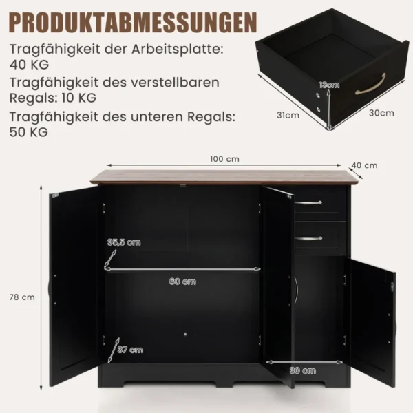 Spintelė 100x40x78cm juodos ir rudos spalvos yra praktiškas sprendimas namų laikymui. Dėl tvirto MDF pagrindo ir reguliuojamos lentynos ji tinka įvairiems kambariams – virtuvei, svetainei ar miegamajam.