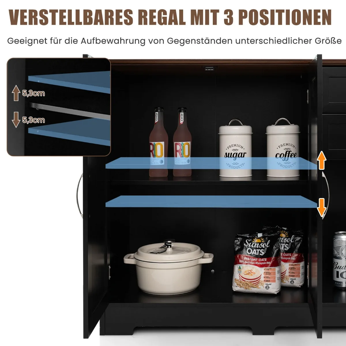 - 3 pakopų reguliuojama lentyna įvairių dydžių daiktams.