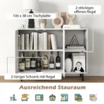 - 2 durų spintelė su vidine reguliuojama lentyna bei 2 aukštų atvira lentyna.