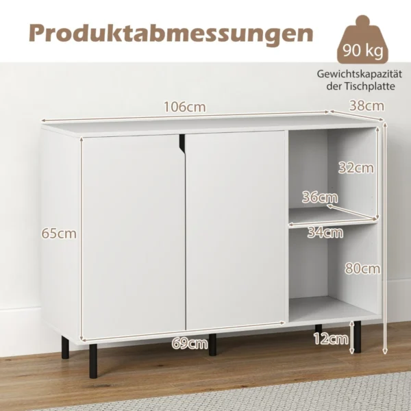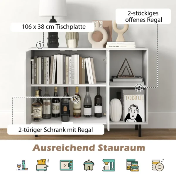 Spintelė 106x38x80cm baltos ir juodos spalvos yra funkcionalus baldas, skirtas papildomam saugojimui virtuvėje, valgomajame ar prieškambaryje. Čia dera praktiškos lentynos ir tvirtas stalviršis, tinkantis indams, virtuvės reikmenims ar kitoms smulkmenoms laikyti.