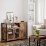 Ši vintažinė rudos ir juodos spalvos spintelė yra puikus pasirinkimas jūsų namų interjerui. Pagaminta iš aukštos kokybės medžio drožlių plokštė (MDP) ir plieno, ji ne tik atrodo stilingai, bet ir yra labai patvari.