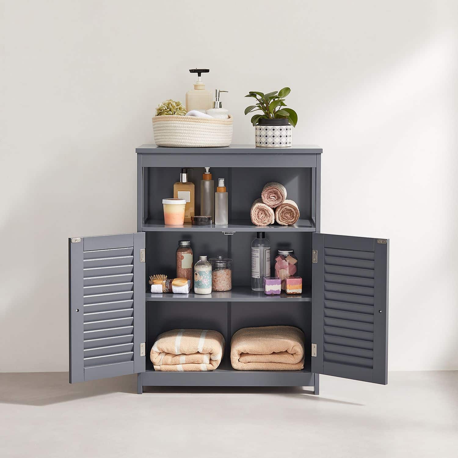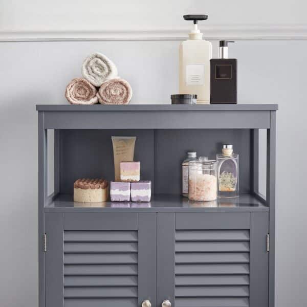 Nieko nėra maloniau, kaip po karštos vonios su burbuliukais įsisupti į jaukų rankšluostį ir pasitepti kvapniu losjonu. Šioje spintelėje rasite pakankamai vietos būtiniausioms maudymosi reikmenims laikyti. Įvairios laikymo galimybės leidžia priežiūros priemones ir vonios druskas patogiai sudėti ant atvirų lentynų, o valymo priemones ir kitus daiktus paslėpti už dvigubų durų. Ant viršutinės lentynos galite pastatyti kvapnią žvakę, kad suteiktumėte vonios kambariui romantišką atmosferą.