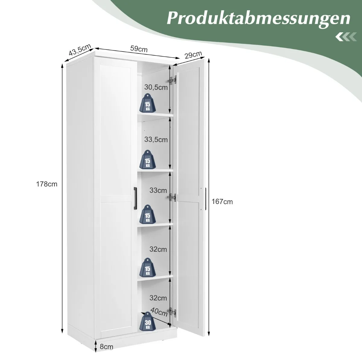 - Matmenys: 59 x 43,5 x 178 cm (plotis x gylis x aukštis)
