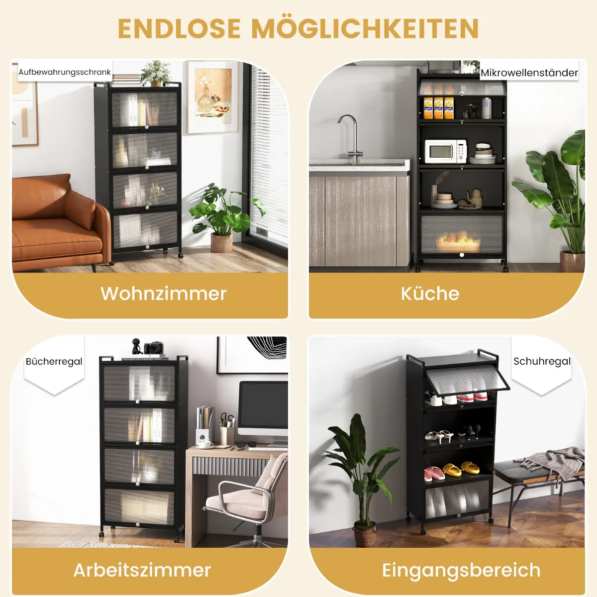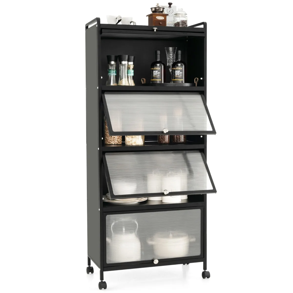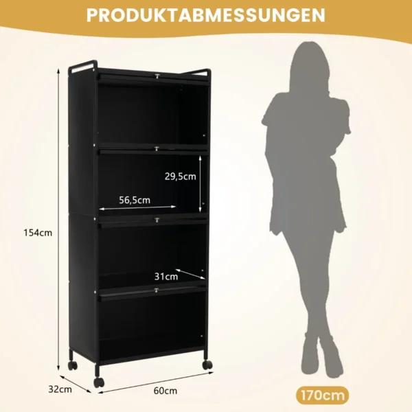- 5 pakopų spintelė su pusiau permatomomis durelėmis apsaugo nuo dulkių ir saugo virtuvės daiktus tvarkingai.