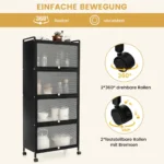 - 4 ratukai (2 su stabdžiais) leidžia spintelę lengvai stumti ar fiksuoti vietoje.