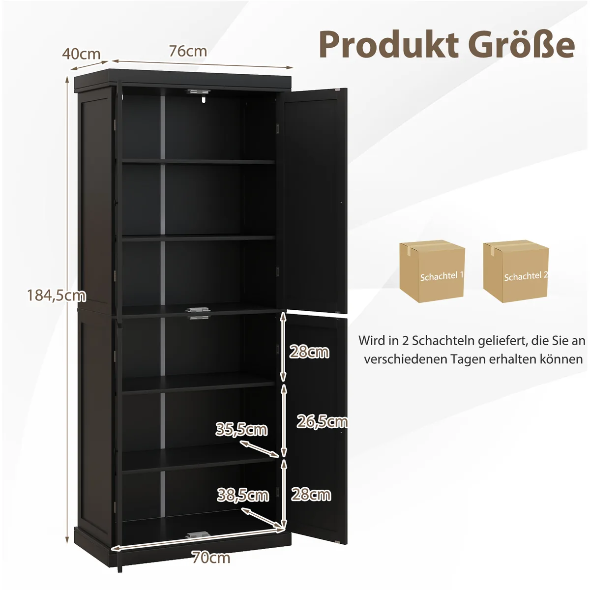 Spintelė 76x40x184,5 cm juodos spalvos yra praktiškas sprendimas virtuvės ar kitų namų patalpų organizavimui. Daugiafunkcinė spintelė su reguliuojamomis lentynomis ir stabilia konstrukcija užtikrina tvarkingą daiktų laikymą ribotos vietos sąlygomis.