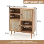 - Platus viršus ir daug vietos saugojimui – 4 atviri skyriai ir 2 spintelės su rotango durelėmis.