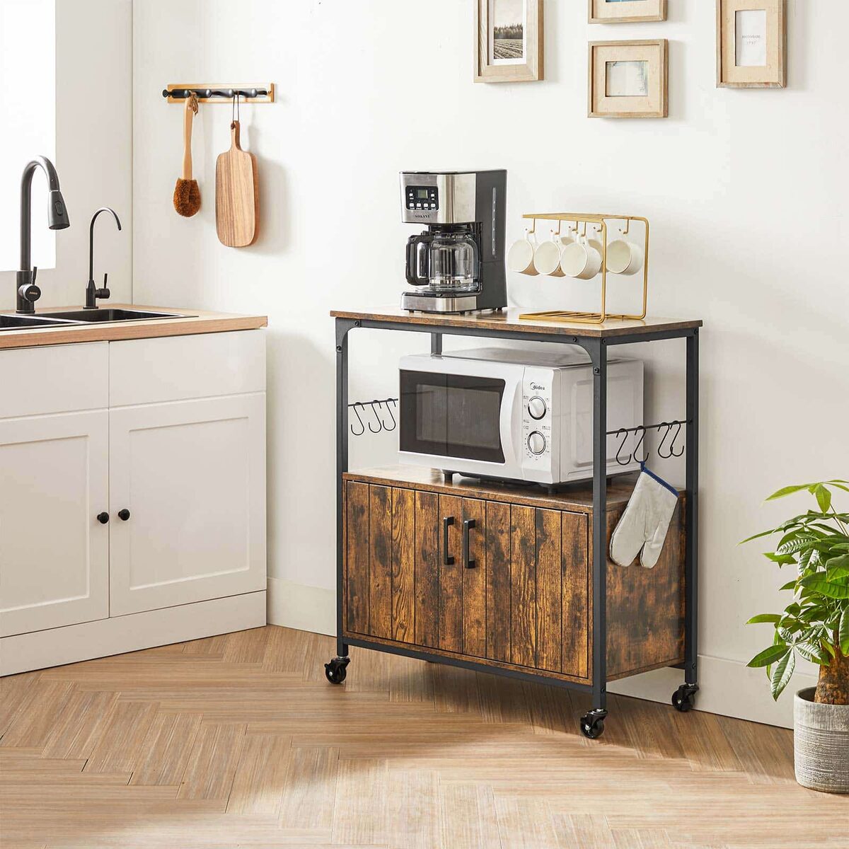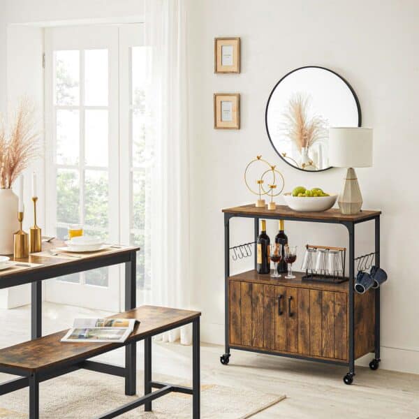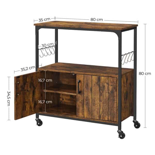 Spintelė ant ratukų LSC093B01, rudos/juodos spalvos, yra puikus pasirinkimas jūsų virtuvei ar bet kuriai kitai patalpai, kurioje reikia papildomos saugojimo vietos ir mobilumo.