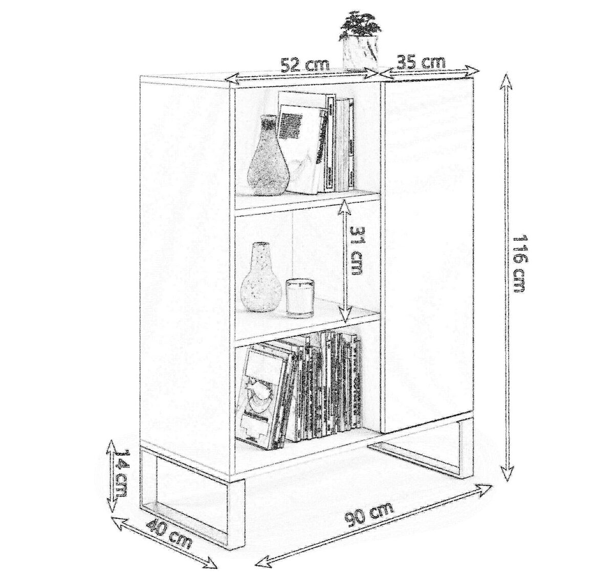- Medžiaga: Laminuota baldinė plokštė, HDF plokštė, metalas