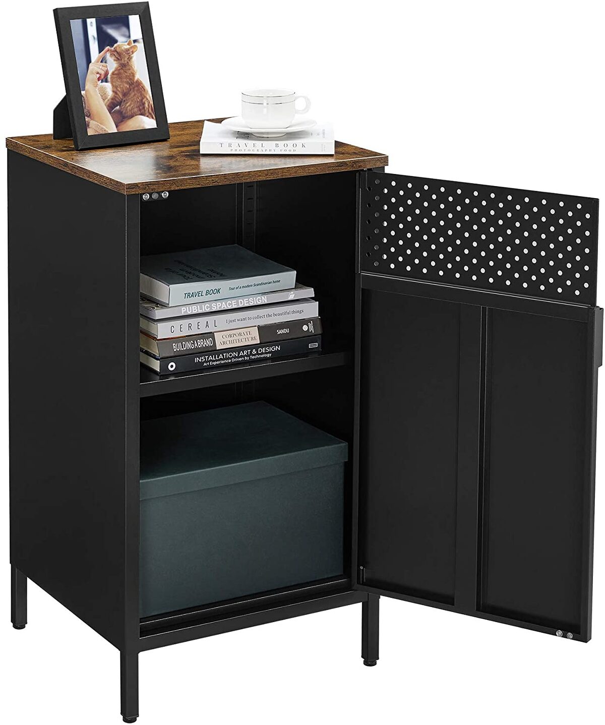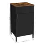 Pagaminta iš aukštos kokybės plieno ir medžio drožlių plokštė (MDP) , ši spintelė yra tvirta ir ilgaamžė. Jos dydis su kojomis yra 42,5 x 40 x 76 cm , o svoris siekia 10,9 kg. Maksimali statinė paviršiaus apkrova yra 50 kg, todėl galite saugiai laikyti įvairius daiktus.