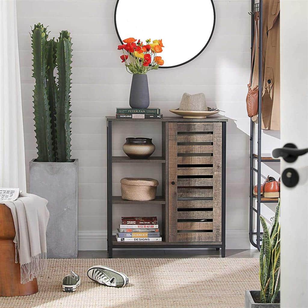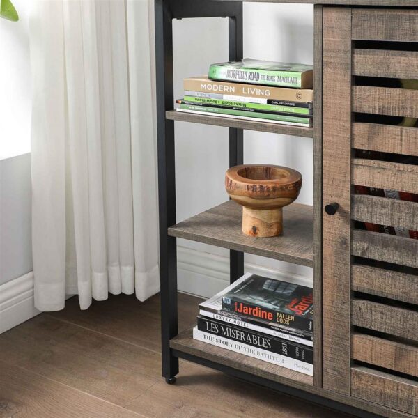 Spintelė turi kelis erdvius skyrius, kurie leidžia patogiai laikyti įvairius daiktus, tokius kaip knygos, dokumentai ar dekoratyviniai elementai. Be to, jos kompaktiškas dizainas leidžia ją lengvai pritaikyti net ir mažesnėse erdvėse.
