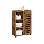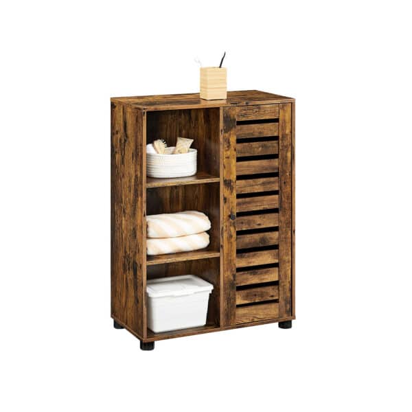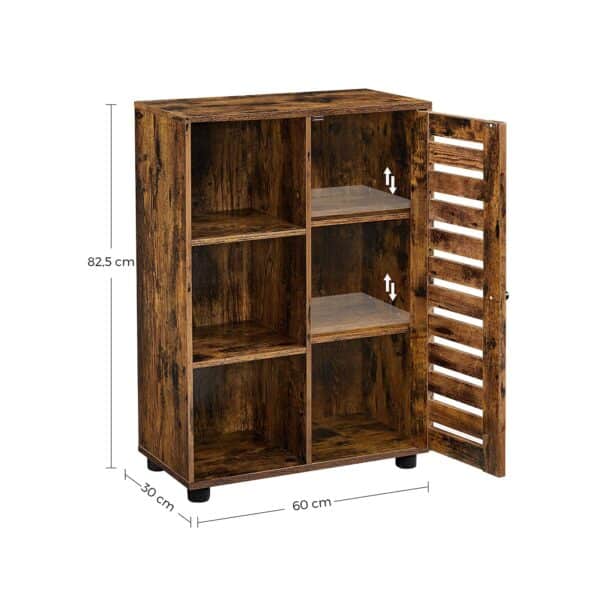 - Stilingos žaliuzinės durys: Už spintelės durų yra 2 reguliuojamos lentynos, ant kurių galima susidėti mažus ir didelius daiktus.