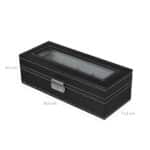 Stačiakampio formos laikrodžių dėžutė su permatomu stiklu yra puikus sprendimas rankiniams laikrodžiams laikyti. Skaidraus stiklo langas leidžia tiesiogiai matyti, kurie laikrodžiai yra dėžutėje, todėl tai labai praktiška. Dėl skiriamųjų grotelių ir paminkštintų laikrodžių pagalvėlių laikrodžiai gali būti tvarkingai sudėti. Laikrodžių pagalvėlės turi labai malonų paviršių ir užtikrina gerą laikrodžių laikymą.