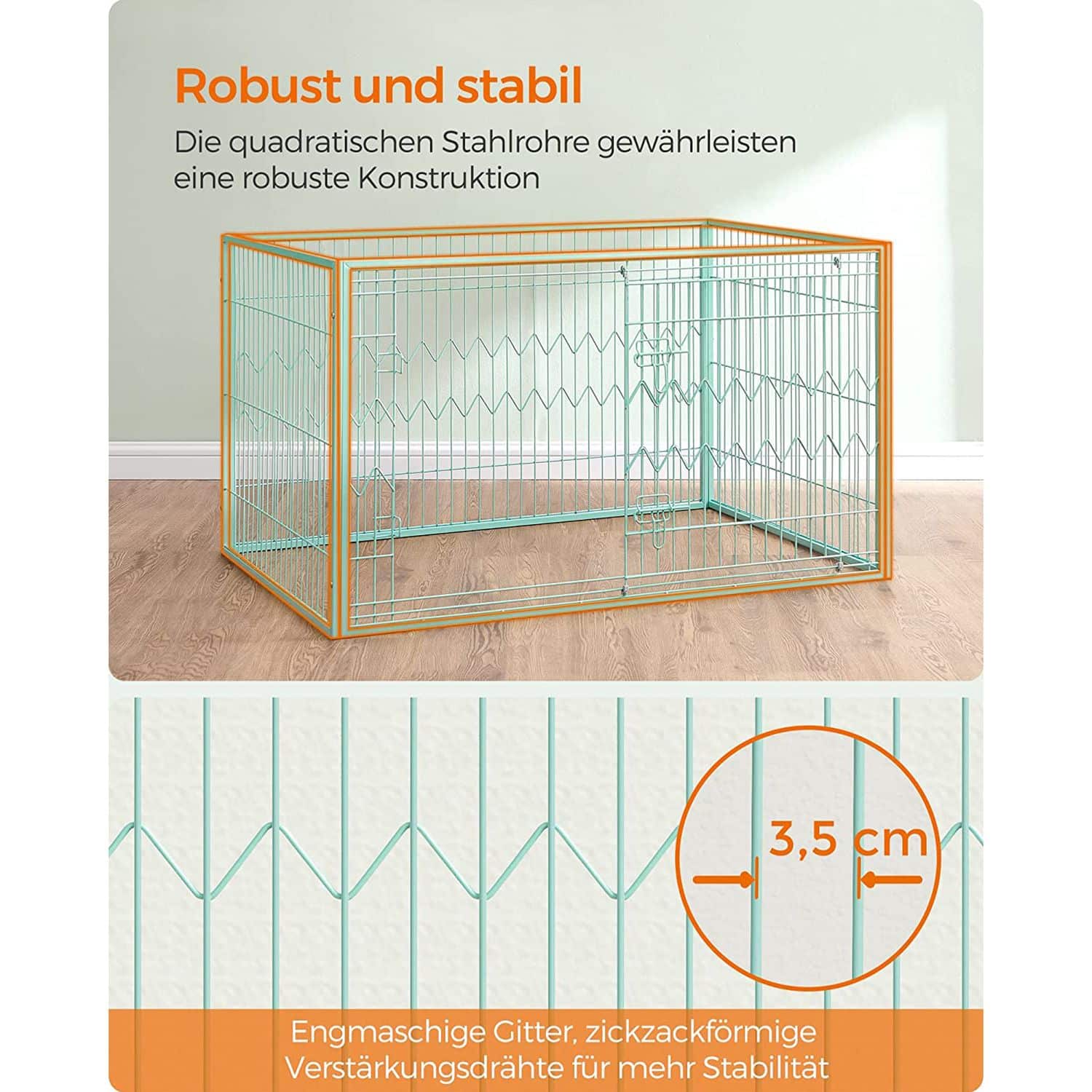 Šuns narvas sveria 14 kg, todėl jį lengva perkelti iš vienos vietos į kitą, tačiau jis yra pakankamai stabilus, kad jūsų augintinis jaustųsi saugiai.