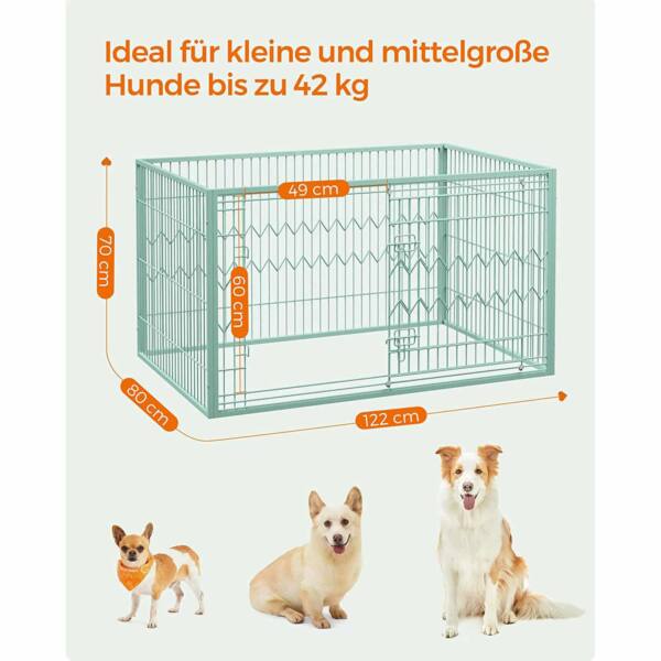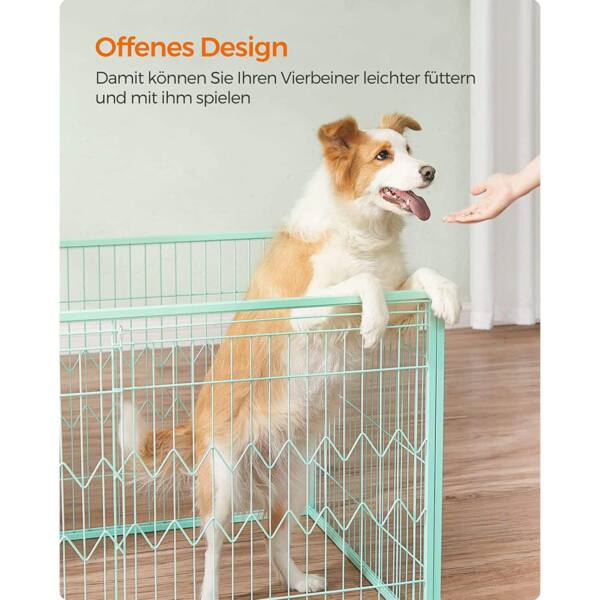 Šis stačiakampio formos šuns narvas su atslenkiamomis durelėmis yra puikus pasirinkimas jūsų augintiniui. Narvas yra žalsvos spalvos, kuri suteikia gaivumo ir elegancijos jūsų namų interjerui.