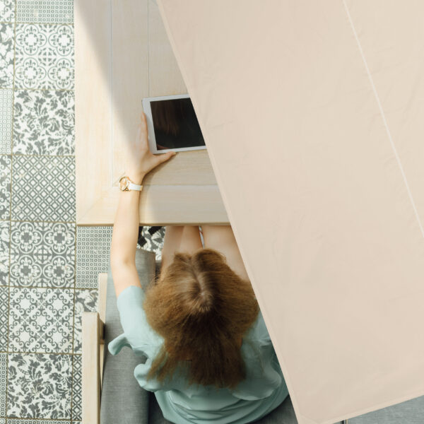 • Privatumo užtikrinimas: Tentas taip pat veikia kaip privatumo ekranas, apsaugantis jūsų asmeninę erdvę nuo pašalinių žvilgsnių.